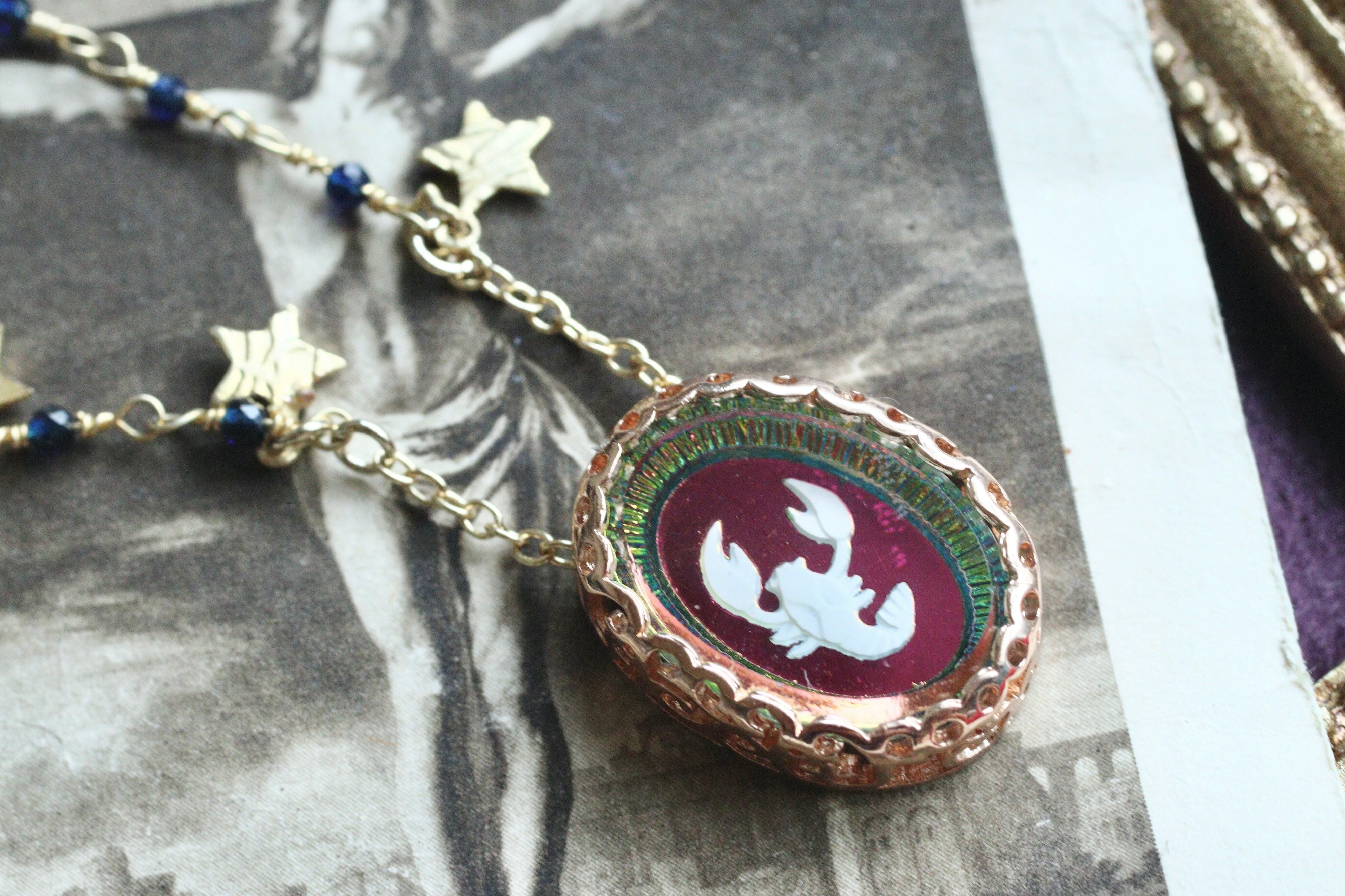 サソリの彫られたヴィンテージガラスを使ったネックレス。