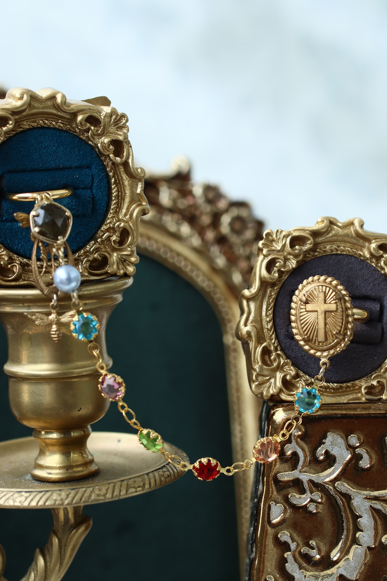 蜂とラブラドライトの指輪と十字架の指輪、どちらもフリーサイズ調節可