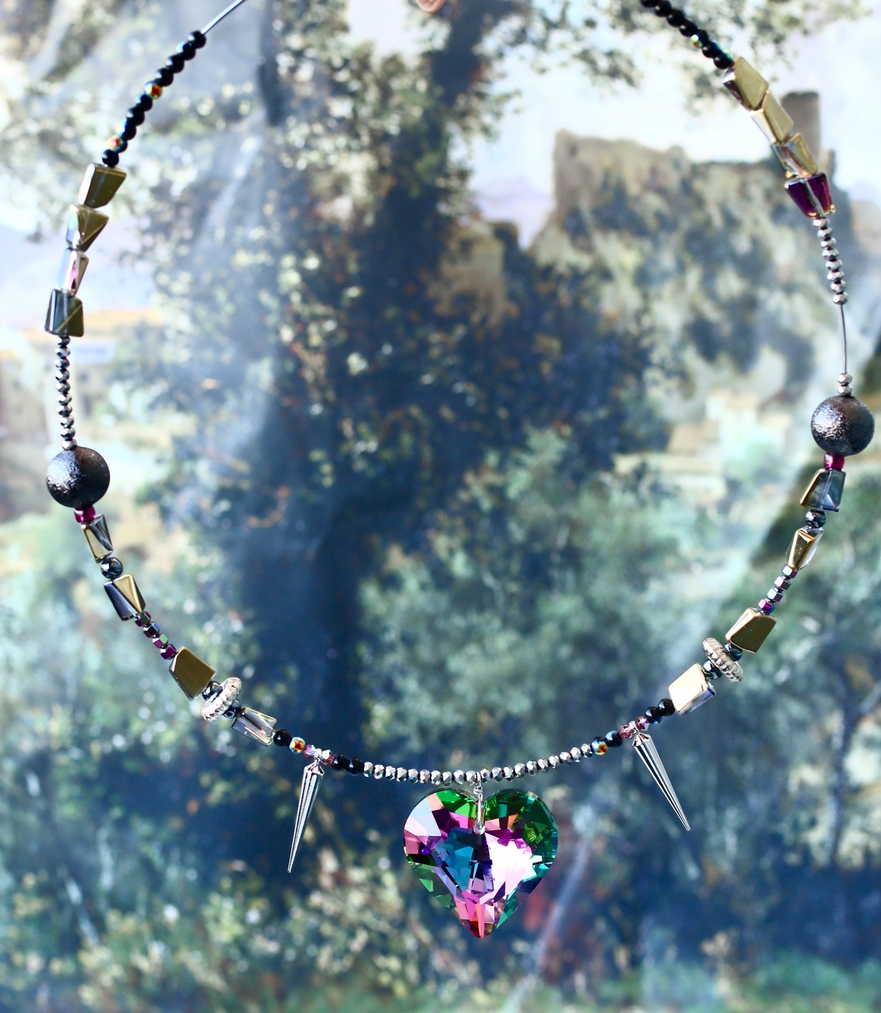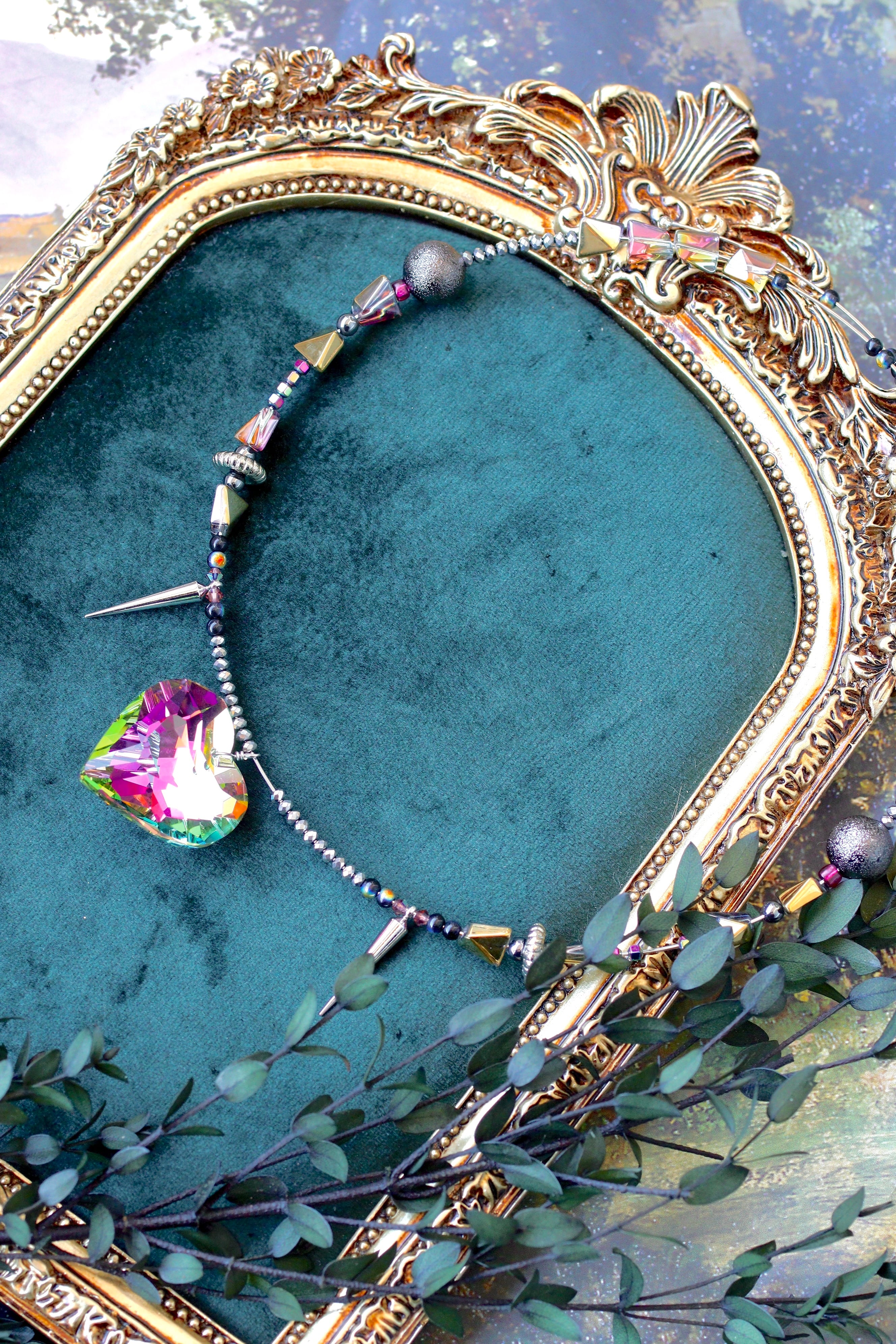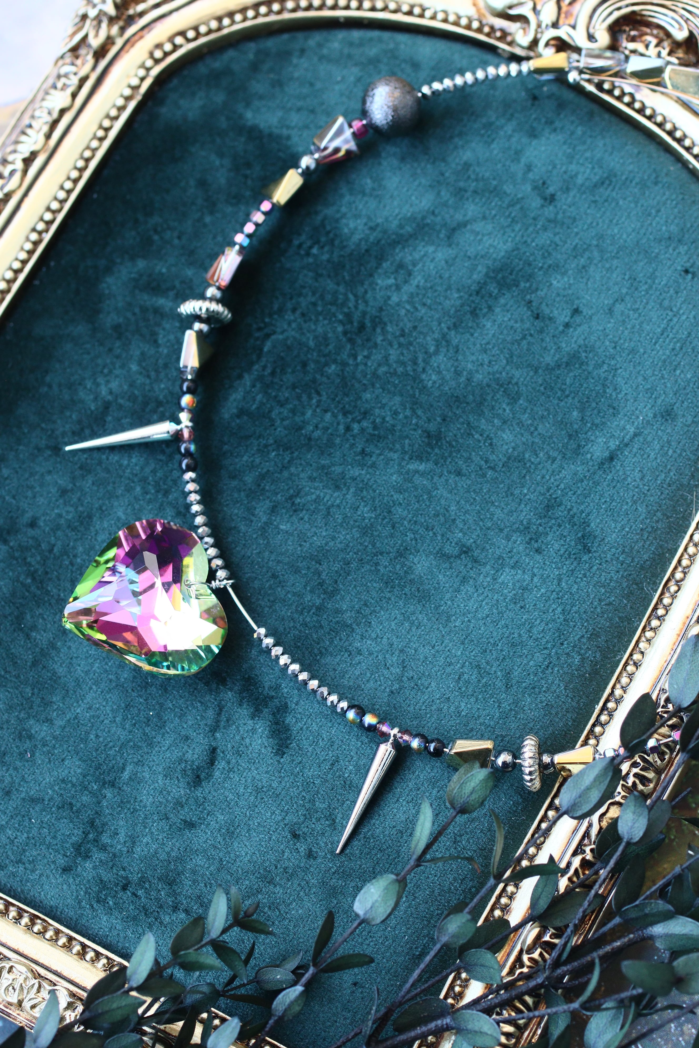 小さめのガラスハートのネックレス。