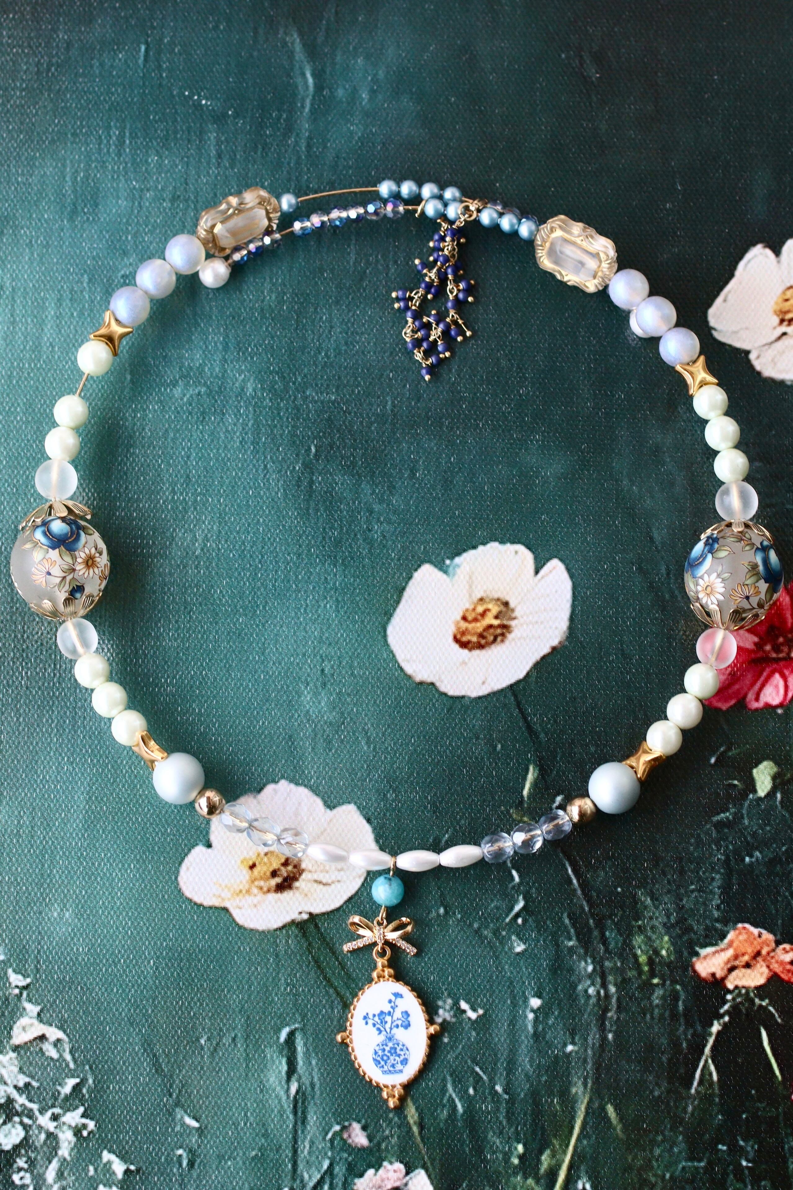 ずり落ちてこないよう、後ろにラピスラズリのチェーンとマグネット金具がついています。