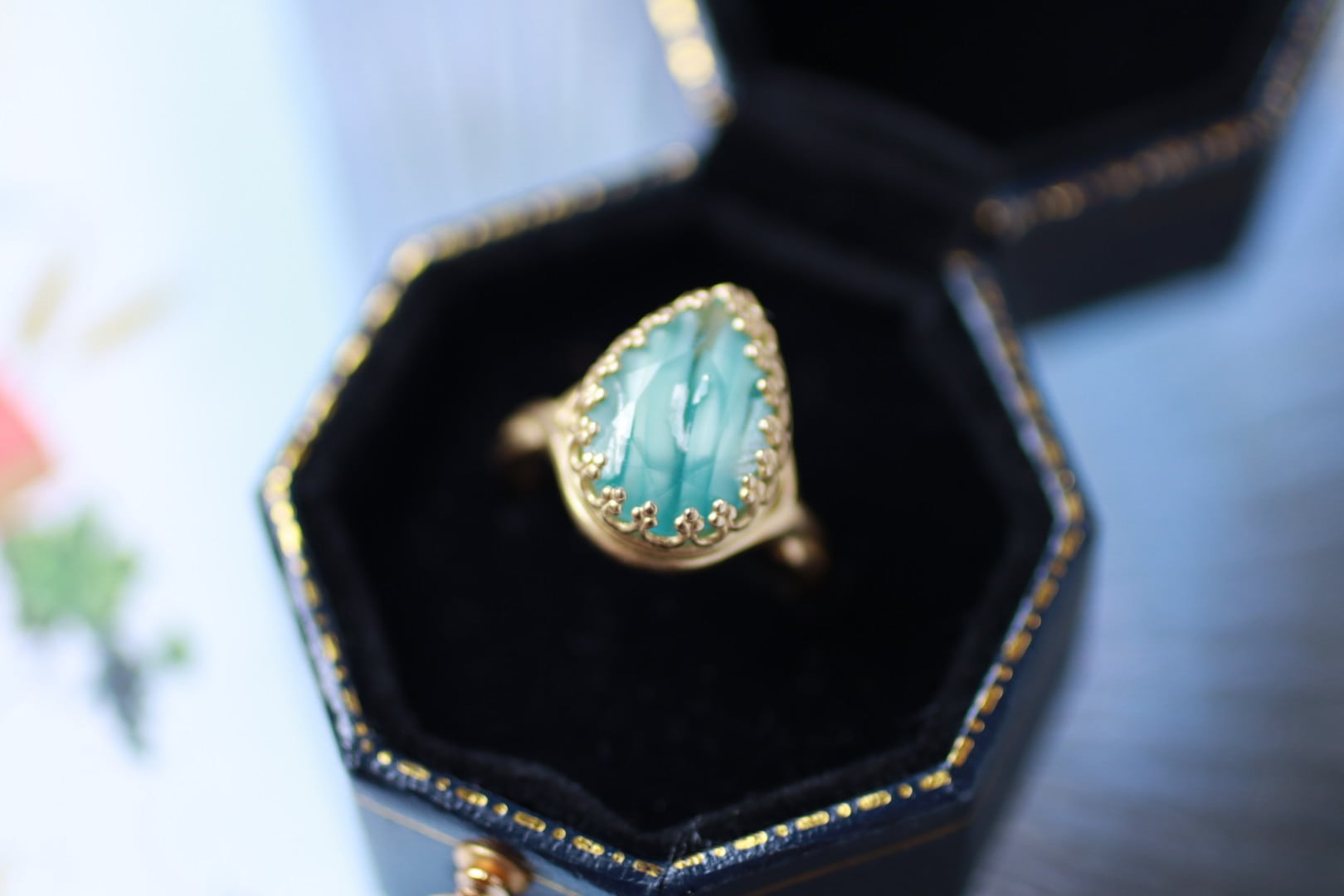 シルクターコイズカラーの美しいチェコガラスを使った指輪。